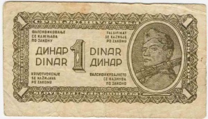 Вот югославский динар 1944 года. Не знаю, редкость или нет, но это, полагаю, их первые послеоккупационные деньги.