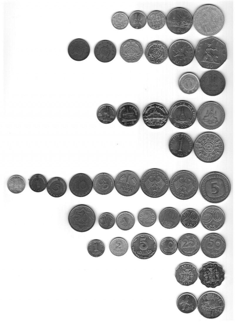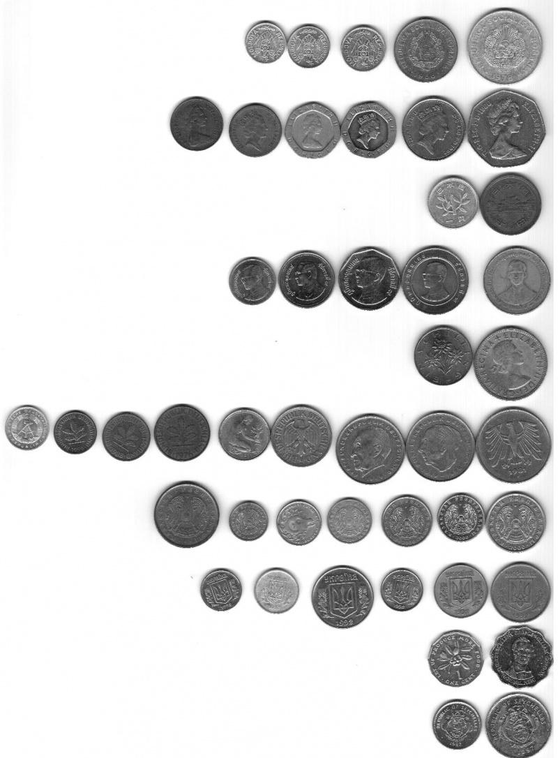 Кто подскажет что за монеты в пристёгнутых файлах? Интересует страна, название денежной единицы, номинал (где нет цыфирь). А то начал помаленьку перебирать собранное и многих вещей даже не знаю.