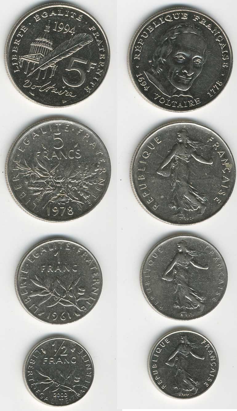 Оп-па. А там где монет побольше, верхнюю (с Вольтером)не встречал! Интересненько...