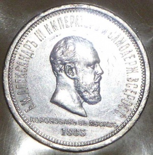 Не нашел в каталоге одну странную монету. Нет ни монетного двора, ни минцмейстера, гурт гладкий. Да и выглядит она подозрительно хорошо (фото не очень вышло)...Судя по Краузе, это коронационный рубль 1883 г. Выпущено 279000 экз.