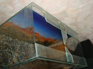 ). Аквариум, косяк сверку, отколото, на фото показано, 100литров, не бежит, вместе с грунтом и картинкой/ваши предложения/