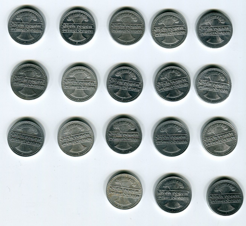 15 монет получается (рейх и рентенпфенниги если считать)