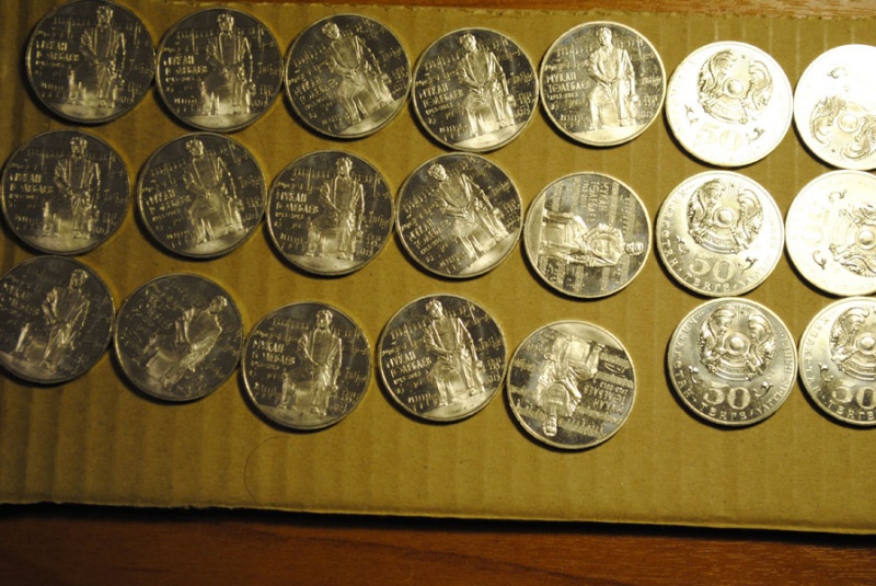 Любителям казахской юбилейки предлагается свежая монета. 50 тенге 2013 года (1 марта запущена в обращение), посвященные Мукану Тулебаеву. Медно-никелевый сплав, монеты мешкового качества. 18 марта прибыли из Казахстана.
