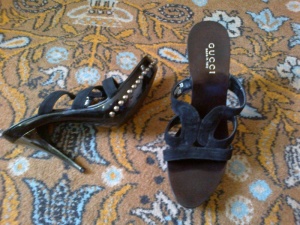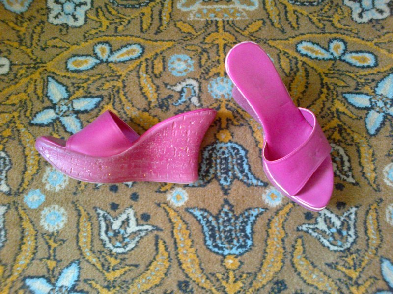 Босоножки черные кожаные на танкетке, размер 38, ремешок через щиколотку.
