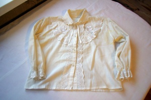 блузка на маленькую девочку (носила примерно в 7-8л.), состояние не очень хорошее - остались пятна от пота подмышками, несмотря на стирку;