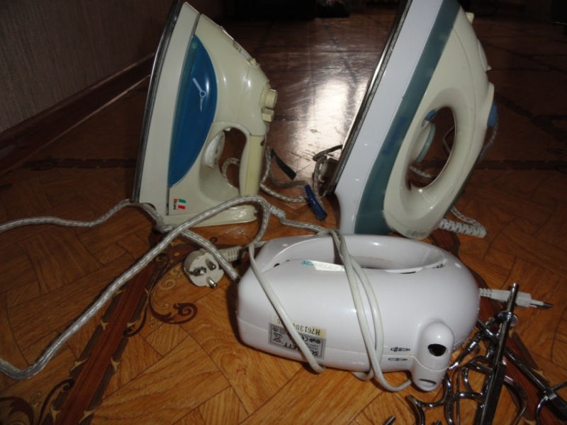 Обмен на шоколадку. Первый (левый) утюг рабочий, второй и миксер - не рабочие, может можно починить или на запчасти.