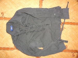 Размер 48-50, легкая, цвет более черный, на фото засветилось., пятно на рукаве тоже от вспышки. обмен на грейпфрутик