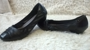 Отдам черные кожаные туфельки 37 размер на девочку, очень мягкие и удобные, но на левом носке приличная коцка, на фото ее хорошо видно.