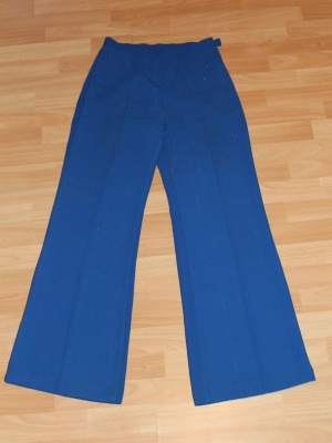 - Брюки женские летние, широкие (если я правильно определила, то ткань лен) размер 46 примерно (на самих брюках указан 38) по поясу 41 см, по бедрам 50 см.
