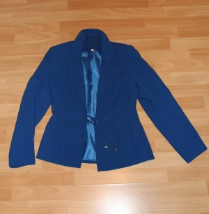 - Костюм размер 46 примерно, брюки широкие, с боку замок. Пиджак без пуговец, завязывается шнурком.