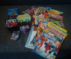 1. стопка журналов мальчуковых в основном трансформеры, но есть и черепашки и скуби-ду и др. марвелы