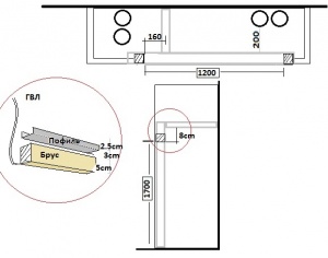 К профилю идущем над верзней перемычкой стояка прикрычен поперечный профиль дающий жесткость с задней кап.стеной. (привязка центра поперечного профиля к левому стояку косяка - 16см).