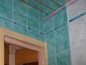 Штуктурил 2 стены...гипсовую - Кнауф Ротбанд.и потом на ротбанд клеили кафель?