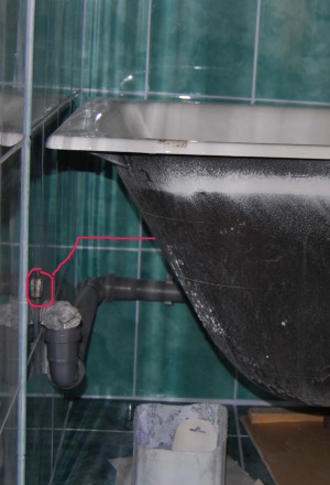 На фотках плохо видно, поэтому отдельно указываю.В штробе за ванной идет отдельная труба для подачи воды на стиральную машину. Вот на этой фото выделил место выхода и обозначил путь трубы.