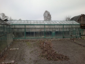 На фото, если приглядеться, можно разглядеть- идёт по земле, вдоль теплицы.