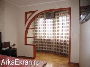 Может, кто подскажет где (кто) могут изготовить и установить 2 арки в дверные проемы. Вот такого плана, но только без полок и до пола (имеется в виду сторона, где полки расположены на рисунке).?