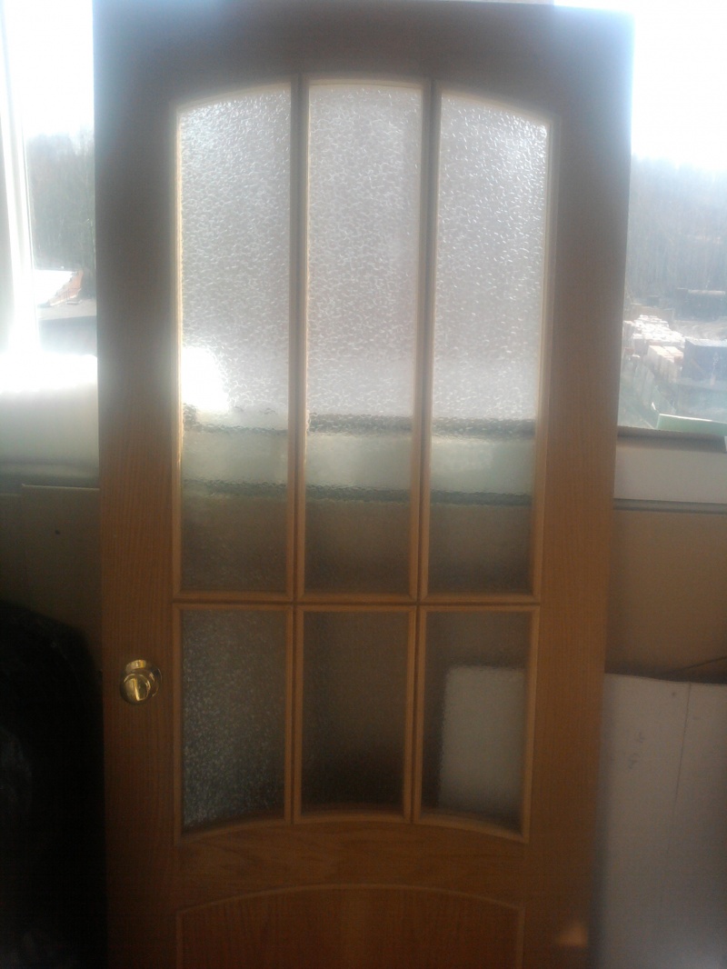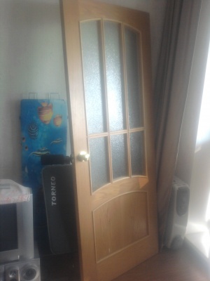 3. Двери со стеклянными вставками. Размер 0.6x2м. - 1 шт. В комлект входят наличники, ручки, замки и доборы. Цена 1000 руб.