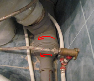 Спасибо, почти поняла. У меня труба для стока вертикально вверх, шланг от машины сверху в него.