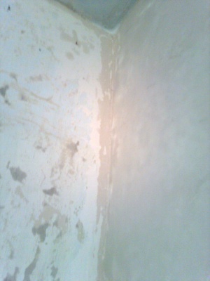 Угол пока вчерне, корявенько конечно. Но вообще, в сравнении с тем, КАК здесь было заштукатурено, моя работа мастерская блин. Главное, чтоб держалось всё!