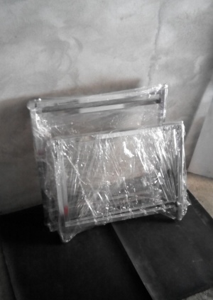 2. Этажерка-стеллаж из квадратного профиля, хром, под стеклянные полки. Основание 90*40 см, высота 160 см, на 6 полочек, цена 2000руб.