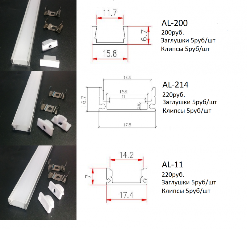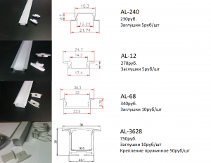 Продам алюминиевый профиль для светодиодной ленты разных размеров по очень хорошим ценам! Весь профиль длиной по 2 метра. Цена указана за профиль с экраном, аксессуары отдельно.
