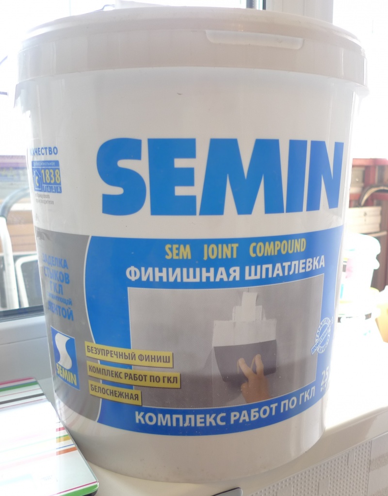 2. Semin шпаклевка в маленькой банке. Около 3 кг. Шлифуется нормально.