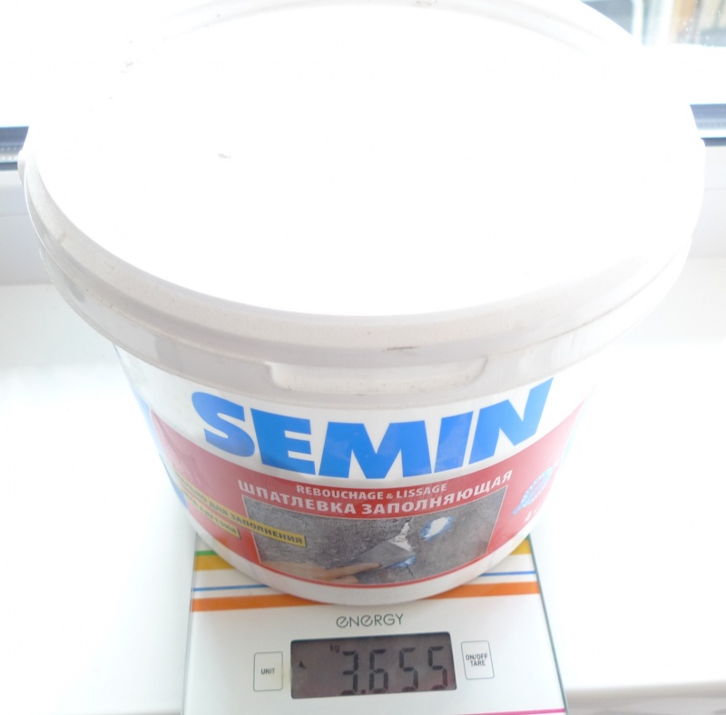3. Semin шпаклевка в большом ведре. Тоже около 3 кг. Шлифуется нормально. Большое ведро нужно самому - так что тара - ваша.