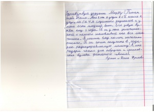 Ребята тоже не остались без сюрпризов, они получили сладости и «Волшебные письма Дедушки Мороза», в которых Дедушка предлагает ребятам подготовить творческое задание: написать стихотворение или красивый рассказ, сделать своими руками поделку, т.е. проявить свои творческие способности. И самое главное – заказать подарок, о котором они мечтали весь этот длинный год.