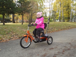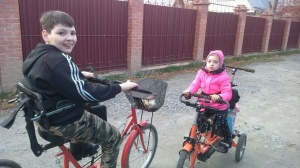 Но парень не унывает: даже научился ездить на специальном велосипеде.