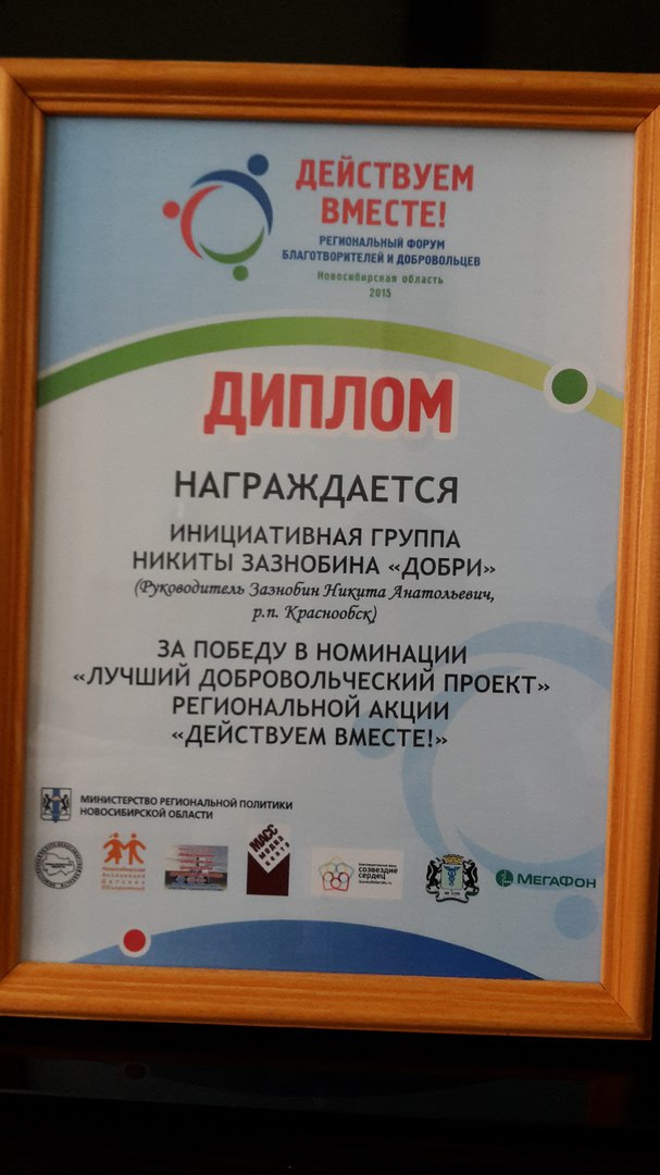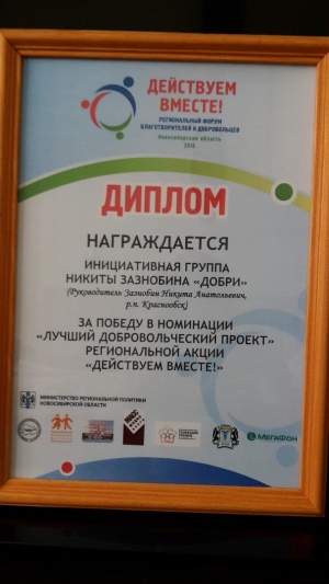 Инициативная группа Никиты Волкова «ДОБРИ» принимает участие в конкурсе на получение Национальной премии «Гражданская Инициатива».