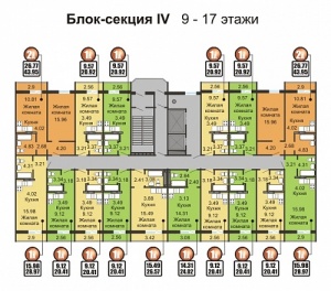 Будучи в кабинете мы забронировали студию 19м+2,5м балкон на 9-ом этаже, не угловая и не проходная. Типичная комната. Потолки 2,8м. Стоимостью 830т.р. (на плане 17 дом, на этаже от лифта направо маленькая зелёная слева). Сдача через полтора года.