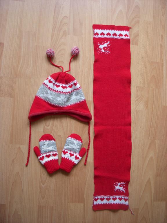 2. Комплект: шапочка + шарф + варежки. Подойдет от 7-8 месяцев до 1,5 лет. ------ 450 р.