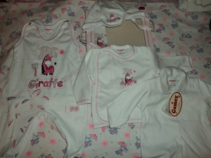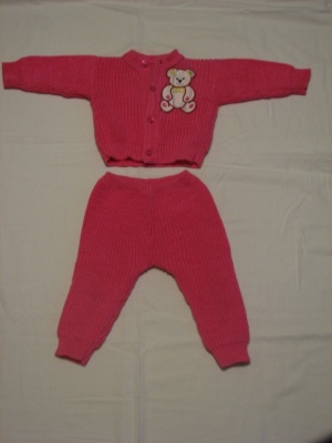 1.Розовый костюм (штанишки: общая длина 42 см, шаговый шов 24; кофта: общая длина 28, обхват по груди 56) - 450руб.