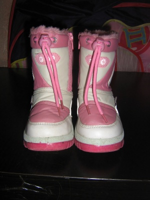 Вот такие сноубутсы продам, размер 24. по стельке 15см. искуств мех.расчитаны на погоду до -10. мы одевали только на первый снег, удобно по слякоти в них ходить. состояние отличное. 350рублей