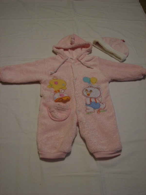 4. Розовый комбинезон (общая длина 52см, обват по груди 56) - 200руб, шапка в подарок.