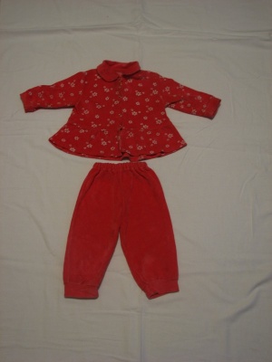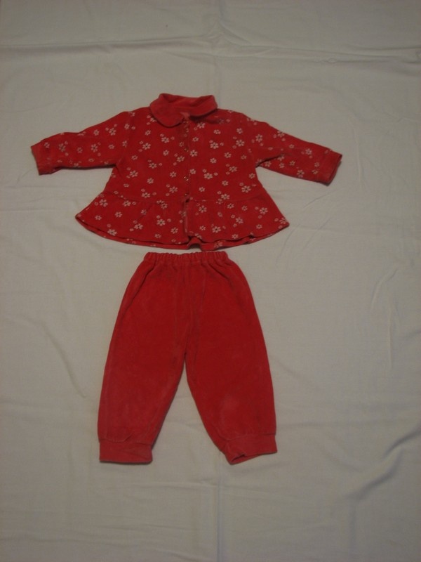 2. Красный костюм (штанишки: общая длина 39см, шаговый шов 21; кофта: общая длина 32, обхват по груди 56) - 450 руб.