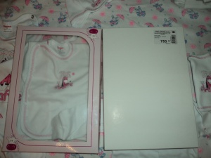 Замечательный набор из 5ти вещичек: ползунки с грудкой, две кофточки, чепчик, нагрудничек. Цвет универсальный белый, произ-во Польша. рост 62 см(1-3мес). НОВЫЙ. Красиво упакован в коробочку, идеально для подарка. Продам за 600руб (стоит 753руб).