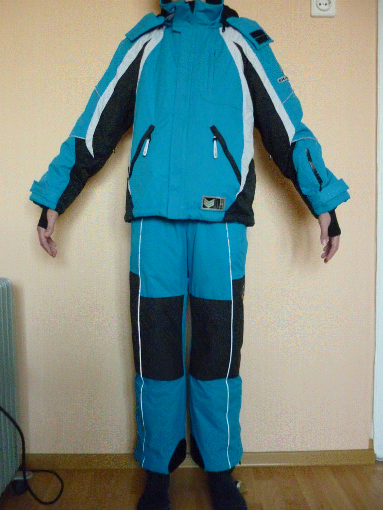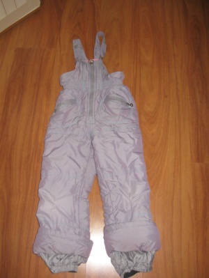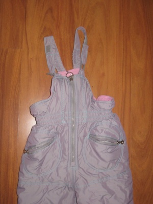 Брюки - полукомбинезон. Длина брюк регулируется отворотом, изнутри брюк на подкладке находится резинка, которая одевается на обувь, для сохранения тепла. Цена 1000 руб.