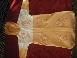 7) Полосатое Чудо! махровый боди на кнопках .Фирменный, этикетку отрезала название не помню. длина 35 см. Носили до 8 месяцев. Цена 150 руб.