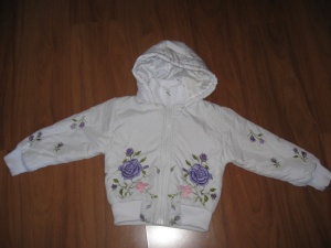 Продам девчачьи курточки на синтепоне: 1. Белая с вышивкой, при стирке не желтеет, капюшон отстегивется, на рост 110-120, цена 200 р. 2. Голубая, производство Испания, практически новая, на 2,5 - 4 года, цена 350 р.