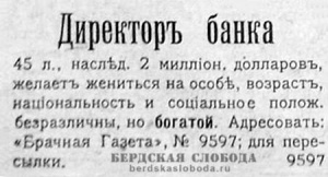 Вот ломаю теперь голову, что же за слово вместо *богатой* было в оригинальной версии объявления. Шрифт у этого слова очень отличается от всего текста и небольшое размытое пятно перед ним говорит о том, что было что-то другое)