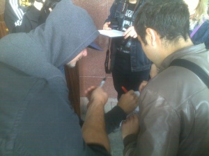 Ранее днём на автограф сессии в гостинице, представители личной охраны Лимб Бискит сумели сфотографировать потенциального "писателя" и отпечатали его изображение на цветном принтере. Для возможного опознания его на подходах к концертному залу или в толпе посетителей.