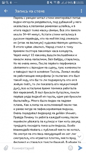 Да я шучу! Тилль и сейчас живее всех живых! А про фэйсов всяких и говорить не хочу. Появились, понимаешь, звезды-Фэйс, Иван Корявых, Эдвард Атева..Дырка от бублика, а не музыка.