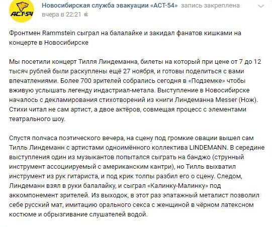 Тилль Линдеманн в Подземке 9 декабря 2018