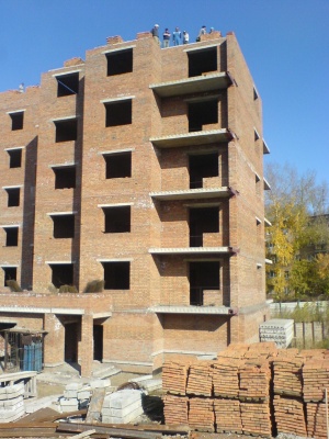 Говорят строим только 9-и этажную секцию, а 17-ти нет .Денег не получают уже пол года (обманул наверное, стали бы они столько времени бесплатно работать). Кирпич и ж/б плиты вроде есть