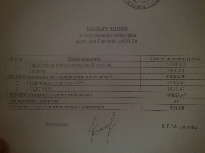 Люди, кто-нибудь может прокомментировать пункты 2 и 3 Калькуляции по содержанию консьержа?Я была сторонником консьержки. Но после этой квитанции