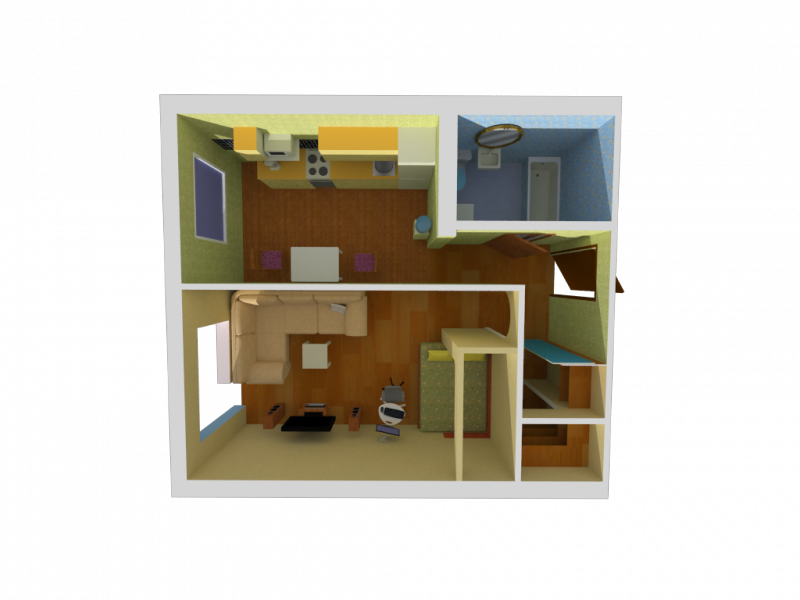 А я свою квартиру уже в в Google SketchUp нарисовал. Удобная програмка и в итернете есть куча мебели, техники готовой для нее, в том числе и из икеи. У меня правда не студия, а однешка, которая 44 кв.м.