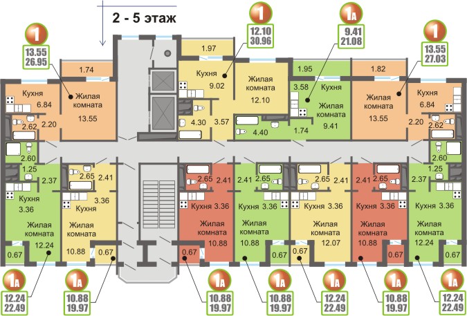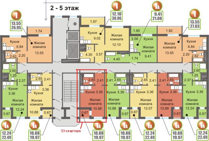 Вот план секции. Получается, если нумерация с 1-й, то моя 43-я квартира никак не может быть на 5-м этаже
