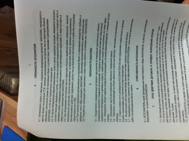 3. Согласно договора, заключенного с охранным агенством, они (т.е. агенство) отвечают ТОЛЬКО за "...места общего пользования ТСЖ...". А вот перечня этих мест нигде не прилагается. А пункт, где указывается, что могут задерживать посторонние лица (как это они будут проверять?!) на территории объекта в нерабочее (это какое такое время?! для кого не рабочее?!) время...