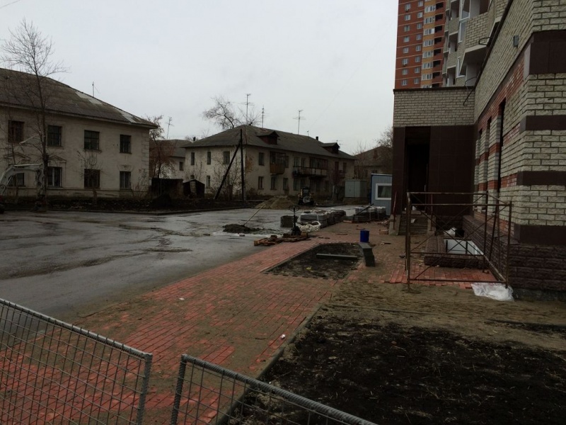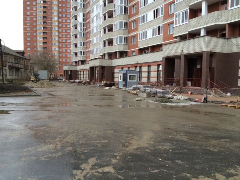 Сегодня были на доме поздно вечером. С торца дома застеклили уже 4 балкона. Асфальта нет только у 1го подъезда со стороны двора, выкладывают тротуарную плитку вдоль подъездов.